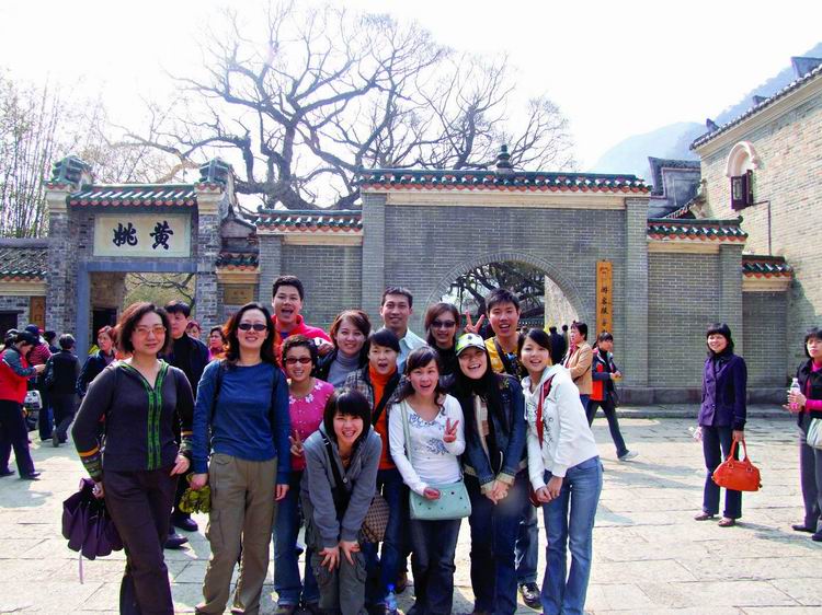 第三日清晨,整裝待發(fā)八點前往黃姚古鎮(zhèn)。賀州是粵東的一座新興城市,而黃姚,卻有著近千年的厚重。從古鎮(zhèn)入口前左邊的一條岔路走進去,首先觸目的便是一條清澈的小溪、一棵參天的古榕樹,我們開始細細觀賞這個小鎮(zhèn)。古榕的軀干伸向小溪,又從空中垂下縷縷氣根,與水中的倒影連為一體。溪邊水井里清可見底,偶有小魚游動。據(jù)說黃姚是按九宮八卦陣式布局,鎮(zhèn)上的石板街有8條,共99999塊青石板,最早鋪砌于清順治年間。年代久遠,不知有多少人走過,青石板已被磨得像鏡子般光滑,隱約泛著人影。橋下的姚江,如今看水依舊清碧,可是繁華不再,顯赫的牌匾也只能靜靜地訴說著昔日的輝煌。石板路的小村落很安靜,人們過著日常的生活,村婦們在井頭溪邊,淘菜洗衣,交流信息,菜渣、閑話都隨溪水流去,并不對外來的游客有格外的好奇。孩子們快樂地嬉戲著,在那些蜿蜒的巷子里不時冒出他們快樂的喧嘩。宗祠府第這樣的舊時輝煌不經(jīng)意地散布于鎮(zhèn)上的民居之中,亭閣前的聯(lián)匾,記錄著文人騷客對黃姚的鐘愛,只是年代遠去,如今物是人非。陽光下的青石板路上有時候也會躺著狗或者貓,你從它們身上跨過去的時候,它們會懶懶地翻翻眼皮,然后繼續(xù)睡在陽光里。雞們顯得勤快些,會邁著方步走在你前面東看看西瞅瞅,如果你不急,它會一直走在你前面,時間對它們沒有任何意義。還有那些老房子,任何一座都可能藏著一個故事。結(jié)了蛛網(wǎng)的窗欞恐怕已有了幾百年的歷史,但是沒有人把這當成了不得的事情,一切如常,平靜隨意。